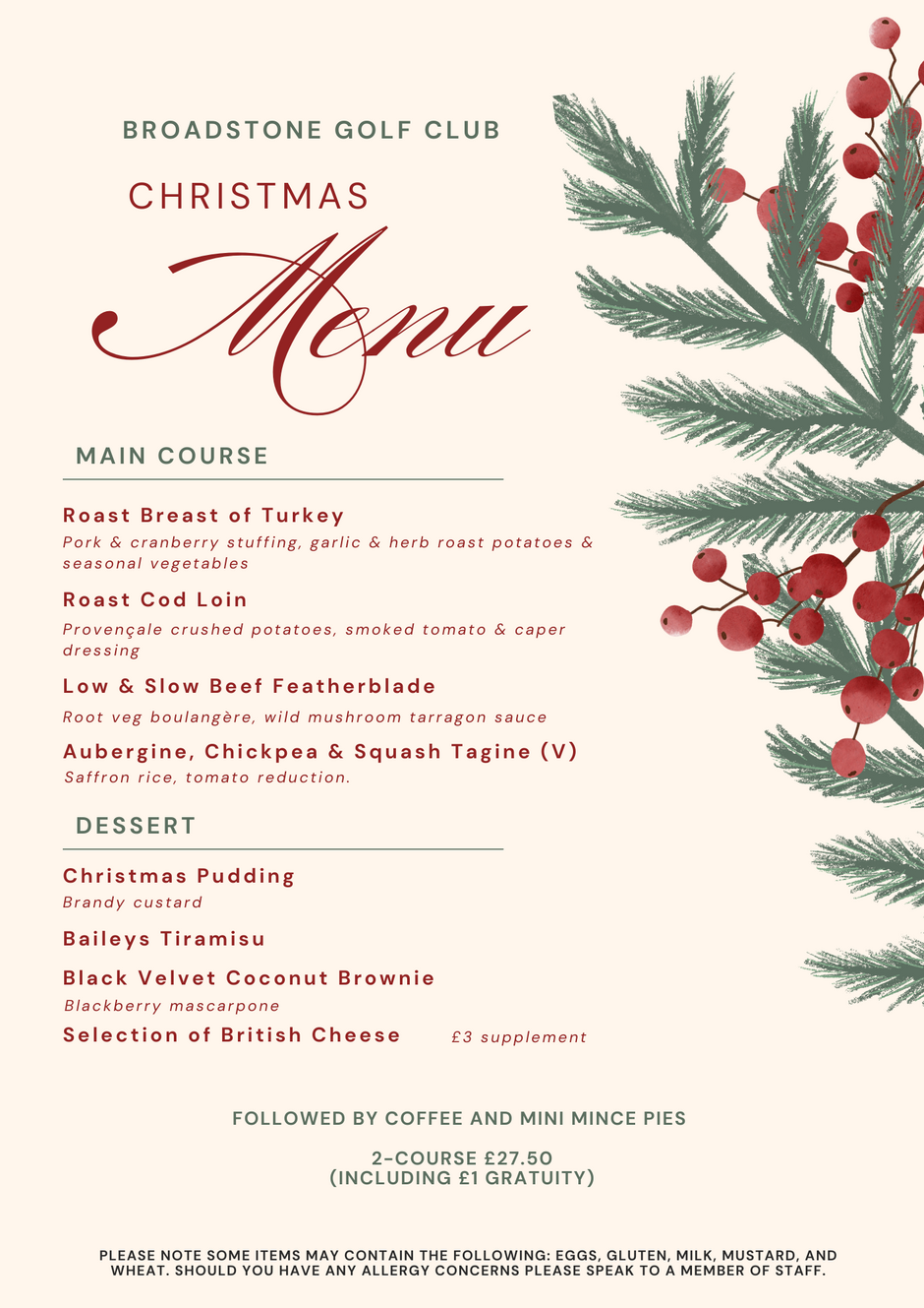 Please see the menu for your Christmas Lunch! Using the form below please submit your pre order by 4th December!