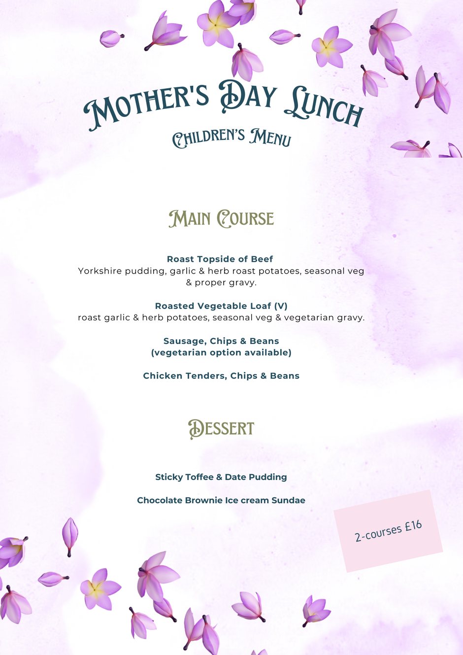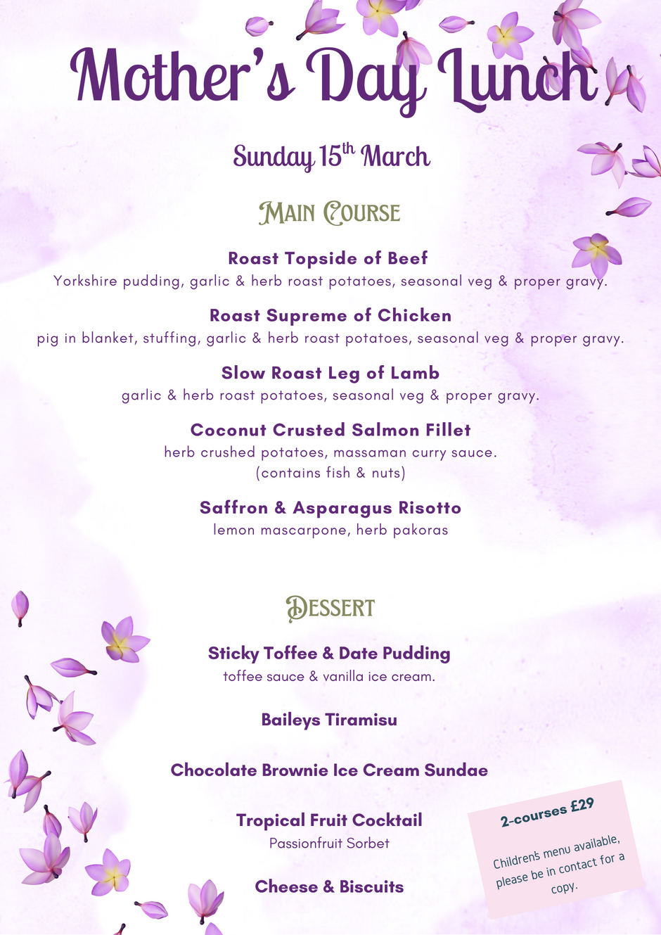 Please see below the menu for your Mothering Sunday Lunch at Broadstone Golf Club.