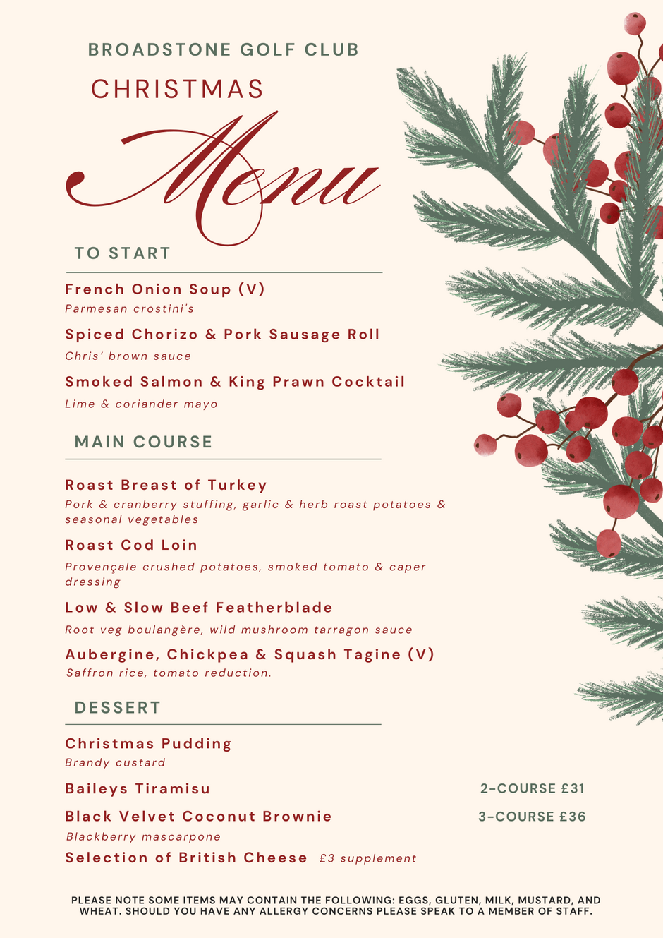 Please see the menu for your Christmas Lunch at Broadstone Golf Club! Using the form below please submit your pre order by 9th December!