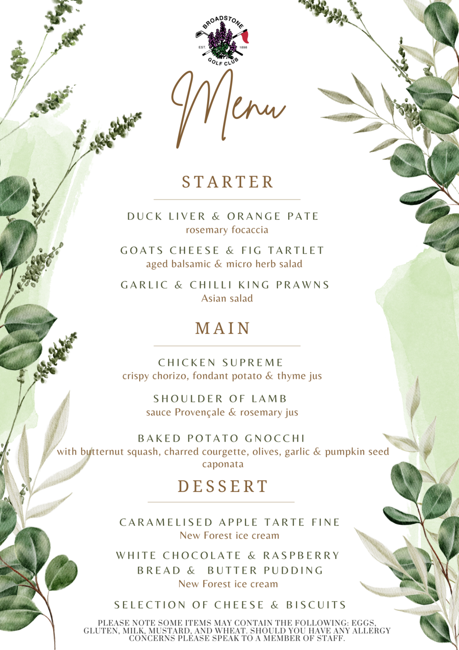 Please make your selections on the form below by Friday 24th October. You can re-fresh this page to add selections for partners/guests.
